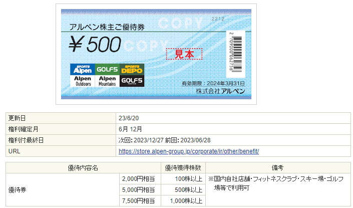 3028アルペンの株主優待情報