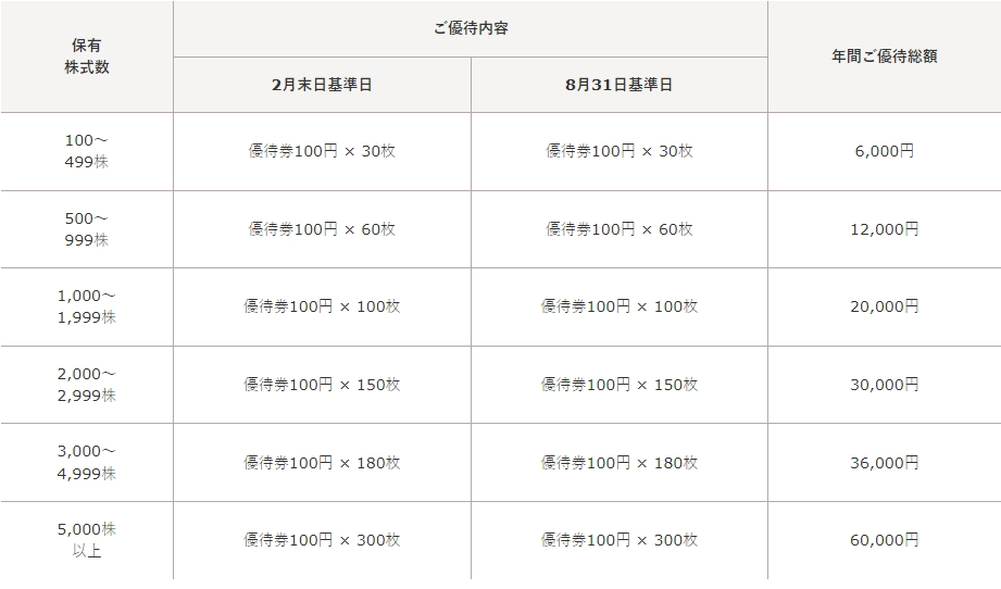 ★保有数が100株の場合: 優待券100円 × 30枚=3000円分