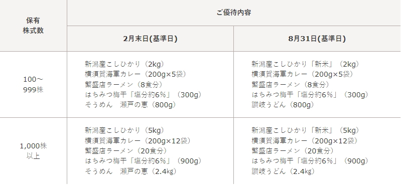 ここを見ても分かる通り、100株所有していても、900株所有していても、もらえる物と量は全く同じです。例え1000株所有していても、10倍にはなりません。