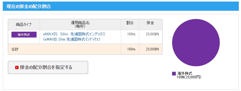 このように、現在は「eMAXIS Slim 先進国株式インデックス」1本で、掛け金は私のできる最大である23,000円にしています。