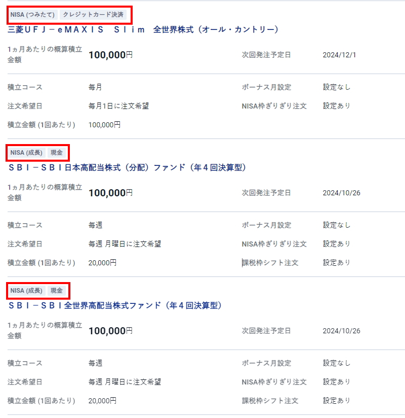 つい最近まで、つみたて投資枠はオルカンに10万円でクレジットカード決済、成長投資枠には現金でSBI日本高配当株式(分配)ファンド(年4回決算型)に20万円、合計毎月30万円を積み立てていましたが、10月からSBI証券で新ファンドが開始され、かなり魅力的な内容だったので変更しました。